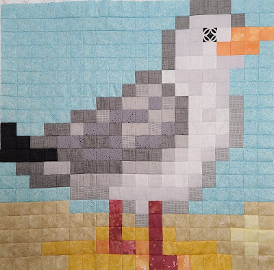 The block I designed is inspired from a pixelated image of a Seagull. In this row-along we work within a few sizing options and I chose the 30" x 30" version giving me 20 x 20 pixels with 1 1/2" finished squares.